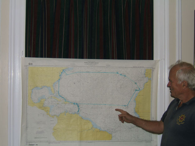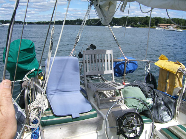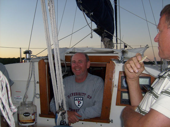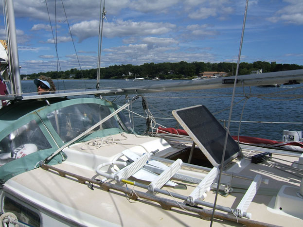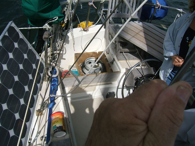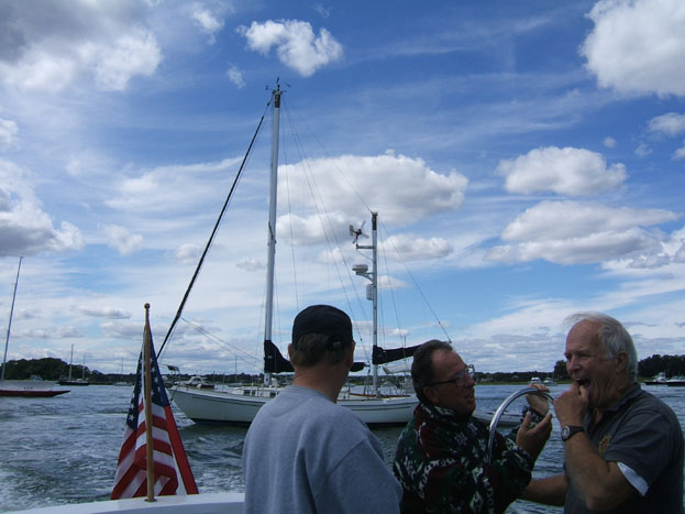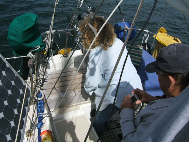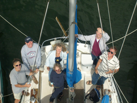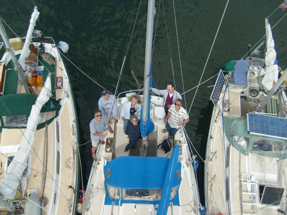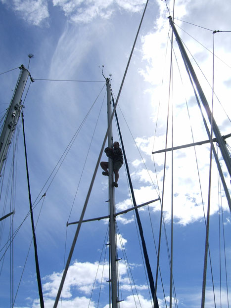 Ted, former owner of Flicka, is up the mast of Pianisimo taking pictures.