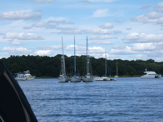 The three boats: Left to Right, Valkyrie (green canvas), Pianisimo, Flicka