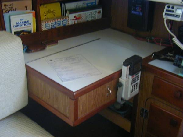 Raytheon 16 mile radar, Magellan 5000-D GPS, Aries windvane, Autopilot, depth finder, knot log with water temp. VHF radio, ICOM MK II SSB/Ham world transceiver with auto antenna tuner Standard AM/FM cassette with surround sound. Two compasses. |