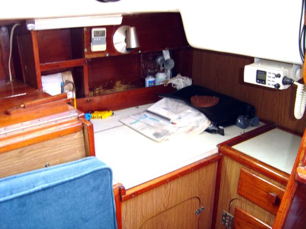 VESSEL WALKTHROUGH Allied Seawind II is a ketch rig, comfortable offshore vessel with a sleeping arrangement for up to five. Starting forward, is a V-bunk, next is a Head on stbd. side aft is a salon with drop down table, next is a galley on port and chart table on stbd. side. |