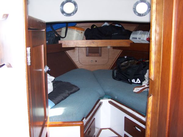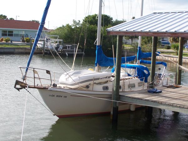 Well, the boat was recovered, cleaned-up, and the engine made operable after rebuilding the starter, alternator and injectors. Needless to say, it was sold far below market prices I understand that the asking price on the bottom was $12,000, and recovery costs were just under $10,000. The buyer, Jim O'Neil, replaced cushions & covers, sail covers 30 amp battery charger and bimini. While the boat was out of the water, the hull was checked and the bottom repainted.