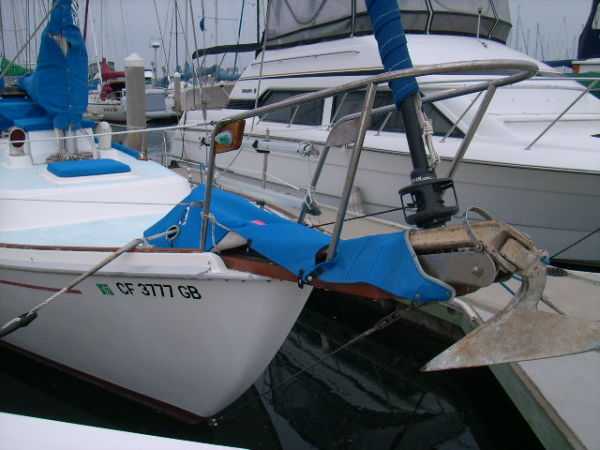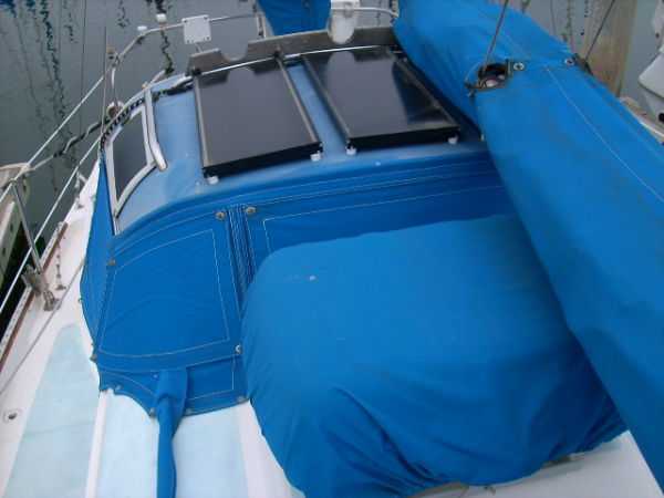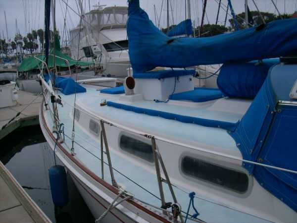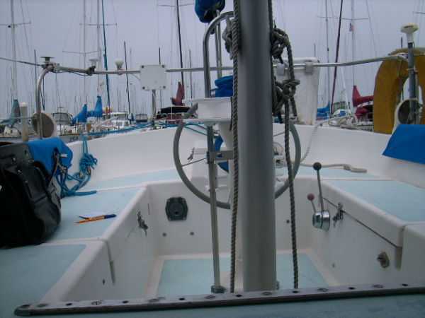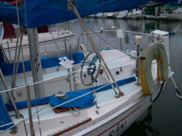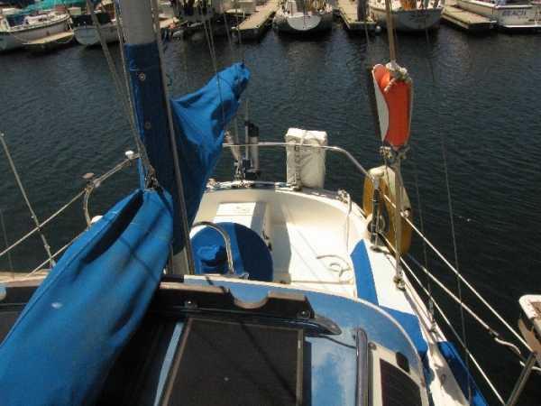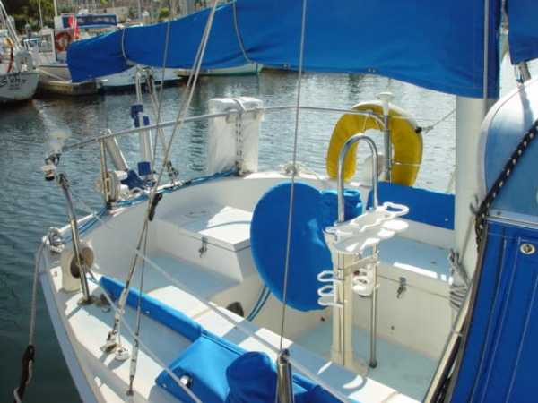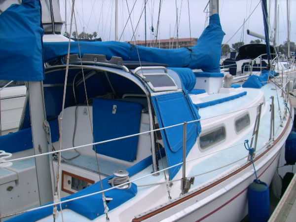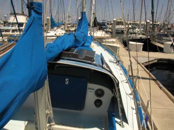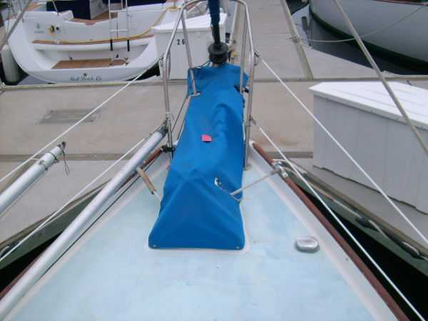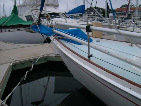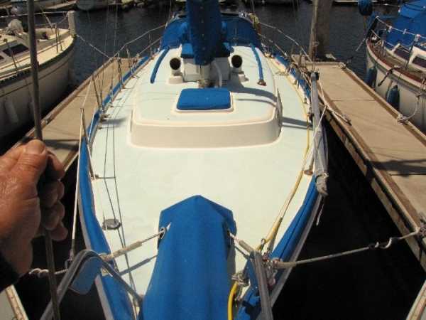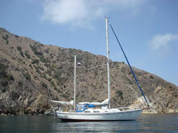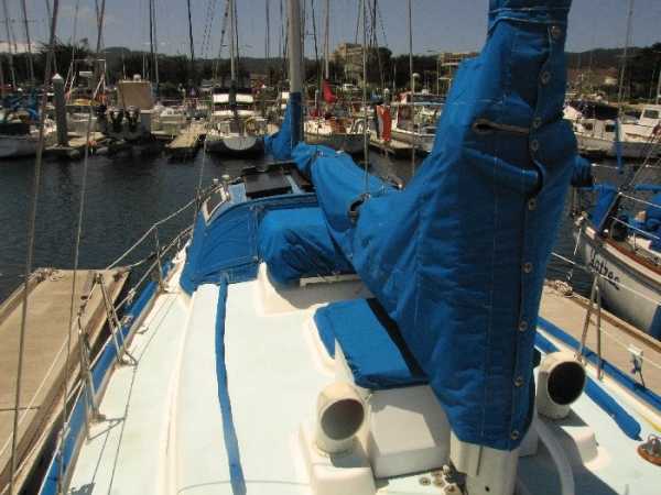 Deck Hardware Edson gear-drive steering ,rudder-post,prop stuffing box replaced '97. Seacocks and thru-hulls double clamped . LEAD BALLAST GLASSED INTO HULL..!!! (no keel bolts , no smile.).Little exterior wood (low maitenance) Teak bowsprit. All decks with non-skid molded surface. Large cokpit lockers. Large mooring cleats forward, midship and aft. Seatiger 555 windlass.Life lines. Lewmar opening ports, two deck hatches, four cabin ports,one bronze port Dorade vents . Compression post flooring '98 .Running rigging lagely replaced '99-'01. Track mounted cleats, dead-eyes and sheet blocks.Sailomat wind vane . CoverCraft WaveStopper HARD DODGER w teak boom gallows '98 Pipe to rail mounted SS Force 10 BBQ. 2 Electric bilge pumps , 1 manual bilge pump. FUEL TANK and Hoses replaced in '99.Closed cell cushions for cockpit seats.Westerbeke manufacturers spares kit. Spare Alternator and Water pump for engine. Many spares for engine, electrical systems, assorted deck hardware 12V search-light. 2 radar reflectors Bosum chair,four 5 gl jerrycans for water and fuel. Insects screens for all opening ports. Canvas covers for all hatches and varnished rails . Cockpit lee-clothes.Baja fuel filter. Canvas and nettings stowage pockets above berths.Teak bookcases in galley and nav. areas '01. Twist lock extendable boat hook.Deck mop. 12V Hella fans."Flopper Stoppers SS. Anchors/Rode : 45 Lb CQR on 240' of 3/8" chain. 30 Lb Danforth on 30' of 3/8" chain,250' line. 22 Lb Danforth on 10' chain ,125' line.Spare line,250' of 5/8" nylon. 30 Lb Bruce. SAFETY GEAR : Winslow 4 person uprated liferaft,deck mounted canister, Hydrostatic release, 406Mhz manual EPRIB. Flares. Cabin O2 sensor, 3 fire extinguishers. Deck webbing jackstays. MOB pole and Horseshoe lifebuoy."Lifesling 2" package. Emergency Tiller. Boarding Ladder. Flares.