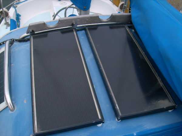 Electrical Full profesional rewire '97-'98, new breaker 110V/12V Heart Interface switchboard , 3 circuit AC battery charger.Five solar panels fixed to HARD DOGGER , regulator/controller . Dynaplate electrical ground shoe '99. Galvanic insolator,Shore power cord. 4 batteries ALL NEW in '07, two 225Ah , 6V golf cart type house batteries, one 100 Ah 12V lead/acid deep cycle spare house battery. One engine start/spare battery. ALL SECURE IN BOXES . Battery switches allows any combination. Engine area lighting.
