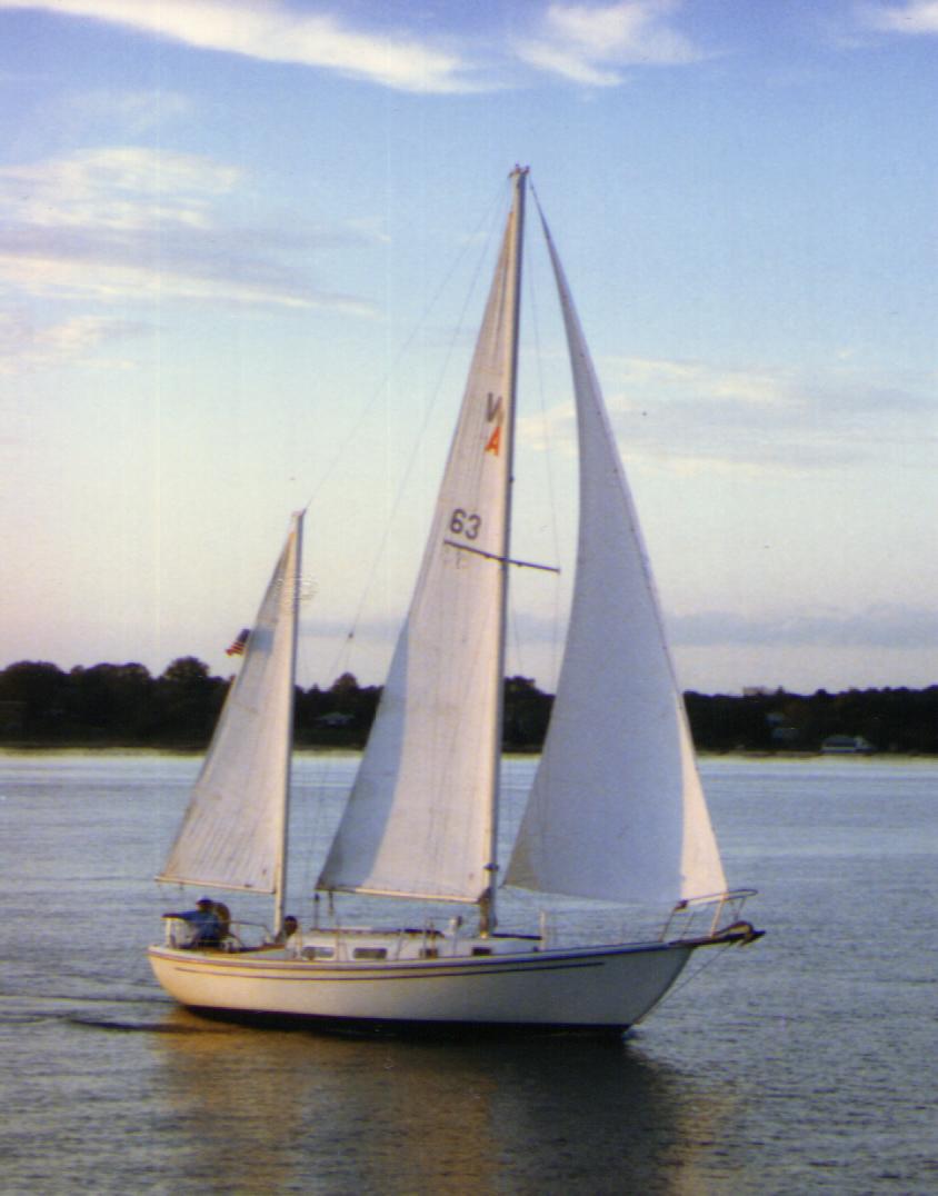 SAILS & RIGGING: 2 #40 jib sheet winches with handle and jib sheet cleats, #8 main halyard winch, stainless steel main halyard with shackle, #8 jib halyard winch and halyard cleat on mast stainless steel jib-halyard with braided Dacron tail and snap shackle, stainless steel mizzen halyard with braided Dacron tail and shackle, main and mizzen sheets with blocks and cam cleats, main boom downhaul, main and mizzen topping lifts with shackles, Genoa gear.