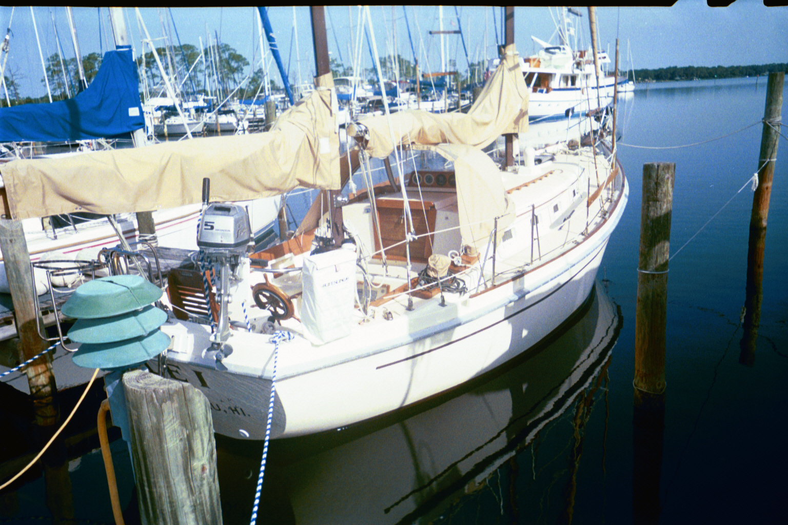 New 03 drip less stuffing box, shower pump, Bruce anchor with chain rode, CQR anchor with chain rode, (new 02) sail covers, (new 02) dodger, fenders, swim latter, US Coast Guard Documentation"Lei" Allied featured boat at the 1980 Annapolis Boat Show