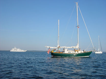 She was originally purchased by a sailor from Martha’s Vineyard and hailed from the Vineyard until recently. Prior to the move, she was always maintained by the Martha’s Vineyard Shipyard in Vineyard Haven. I am the third owner and bought Gwinllan (formerly Skimmer then Grace) in 1999. Gwinllan is the Welsh word for Vineyard.