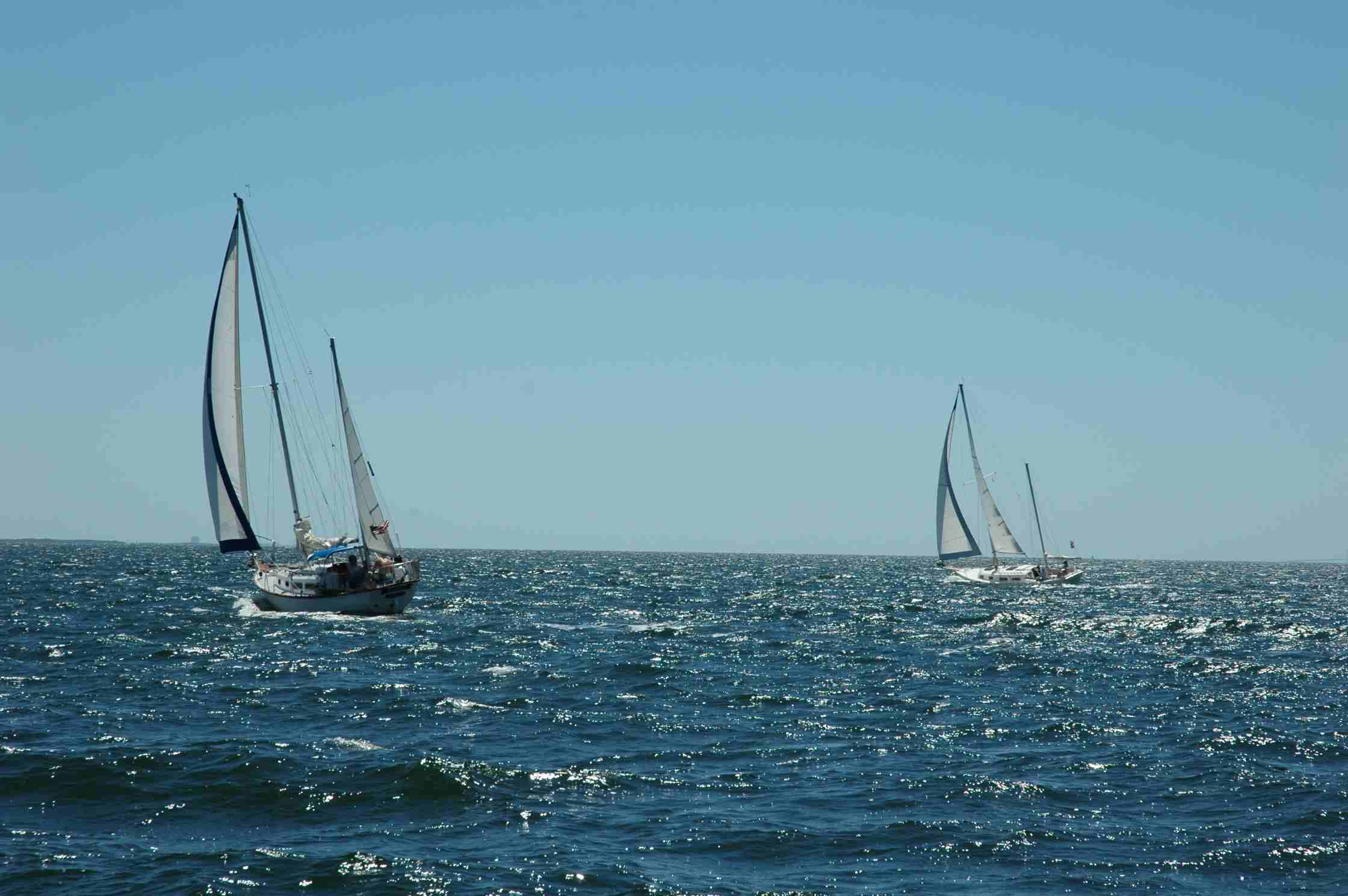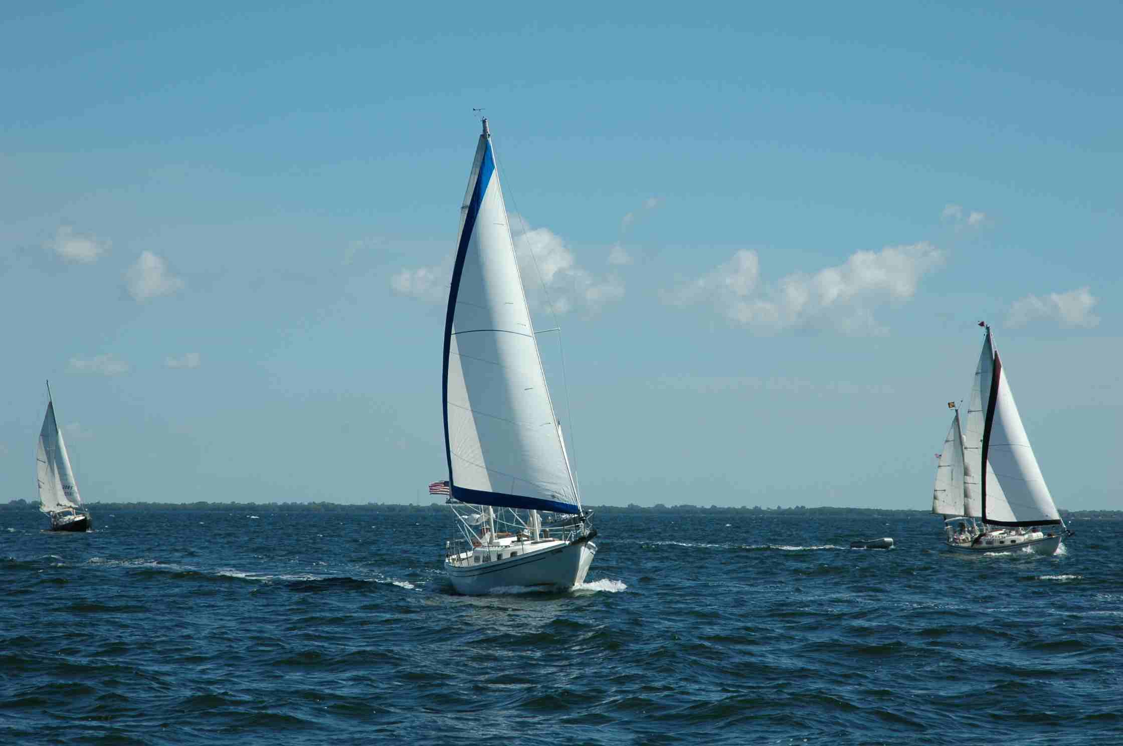 No matter the how, seeing 10 of these Allieds formed up and sailing as a flotilla, there was no doubt I was witnessing a warm, historic moment. I felt a special pride as I sailed abeam a Gilmer-designed Seawind 30 as she was alongside her big sister, the Seawind II 32while all of us were cutting a port tack to windward and chewing some foamwith seven more Allied vessels astern, their canvases brightly lit by a bold, clear days sun and curved by a steady 15- to 20-knot wind.