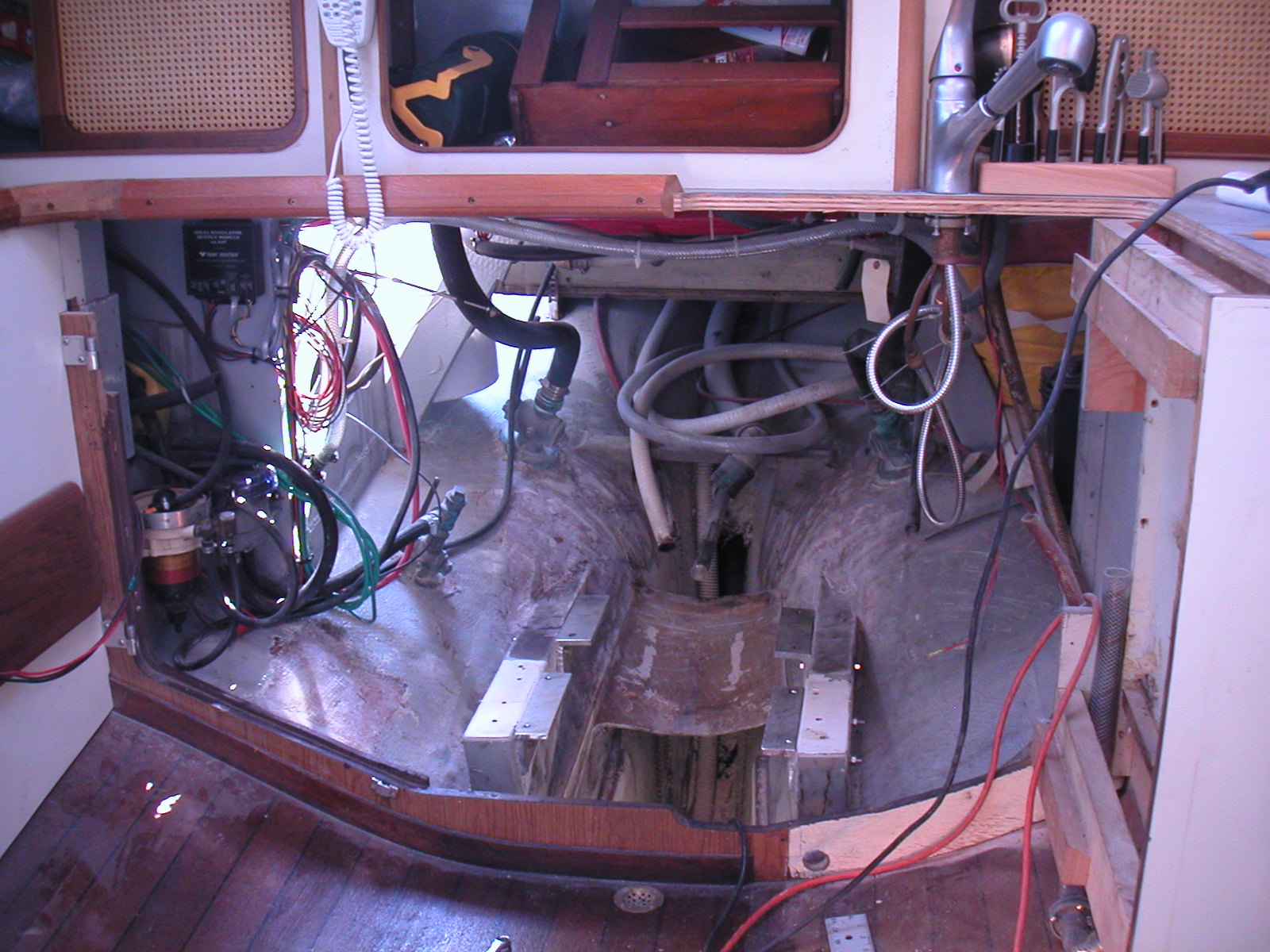 If you have not had the pleasure of removing the engine yet I offer my condolences on an interesting project. It certainly "looks" way tougher than it really is however. I did it on a mooring in Road Harbor with a two foot chop and twenty knots of wind.