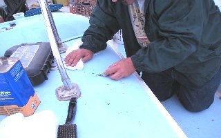 Again, the all-important preparation seems more important and time consuming than the actual installation. If secure bonding is to take place at the mating surfaces the more imperative issue is to properly clean any old sealant (and the previously over-brushed finishes) from the fiberglass.