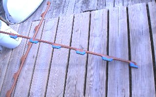 This requires two people, one below and one on deck. Once the rails have been located and each footprint has been screwed lightly in place; trace the unique footprint of each teak base with a carpenter's pencil, onto the masking tape. Carefully unscrew the rails and using a utility knife cut away the profile of the footprint.