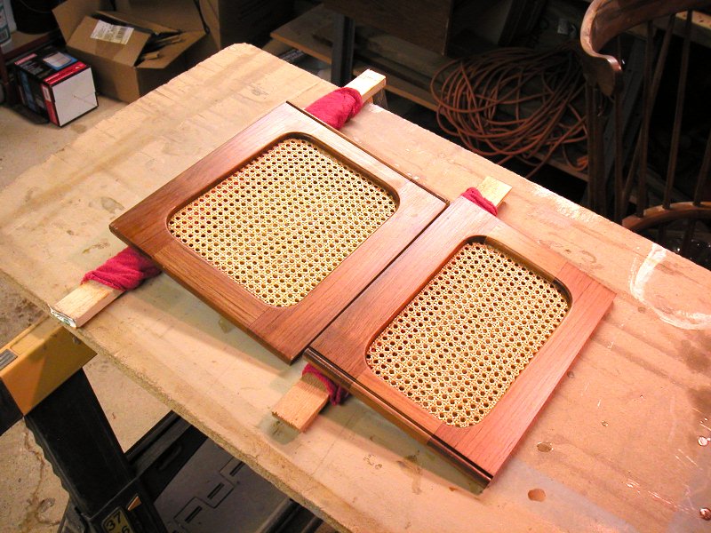 Note; both the careful teak matching and construction details of the new sliders. The finish work included many modest coats of Minwax, ‘Helmsman’, satin gloss urethane to seal the moisture sensitive rattan before the finish work commenced on the wooden frames.