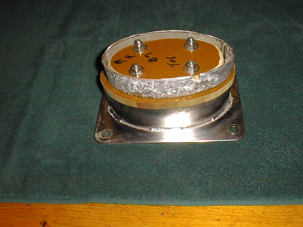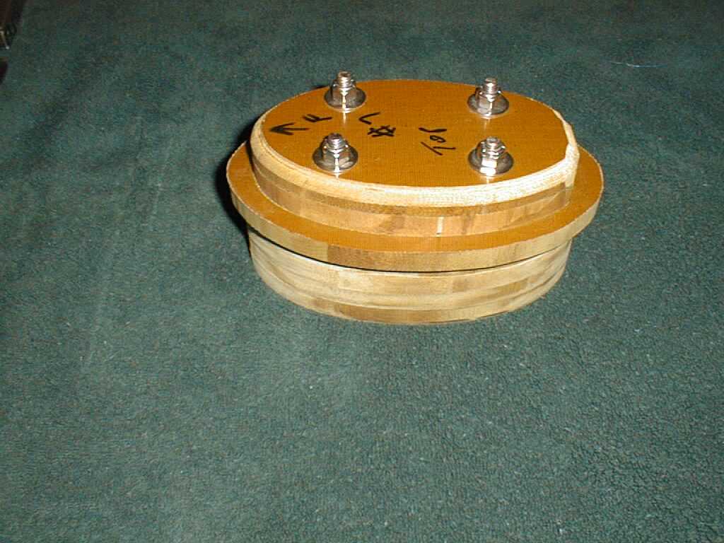 The phenolic block is made from seven pieces of 1/2 inch stock. Four pieces are cut to fit inside the mast step collar. Piece number five is cut to the outside dimensions of the mast step collar. Pieces six and seven are cut to fit inside the mast. The whole affair is bolted together with 3/8 stainless bolts that are recessed into the bottom.